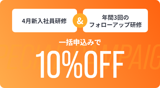 - はい。年間の研修を一括でお申込みいただくと、各研修の受講料を10%割引いたします。